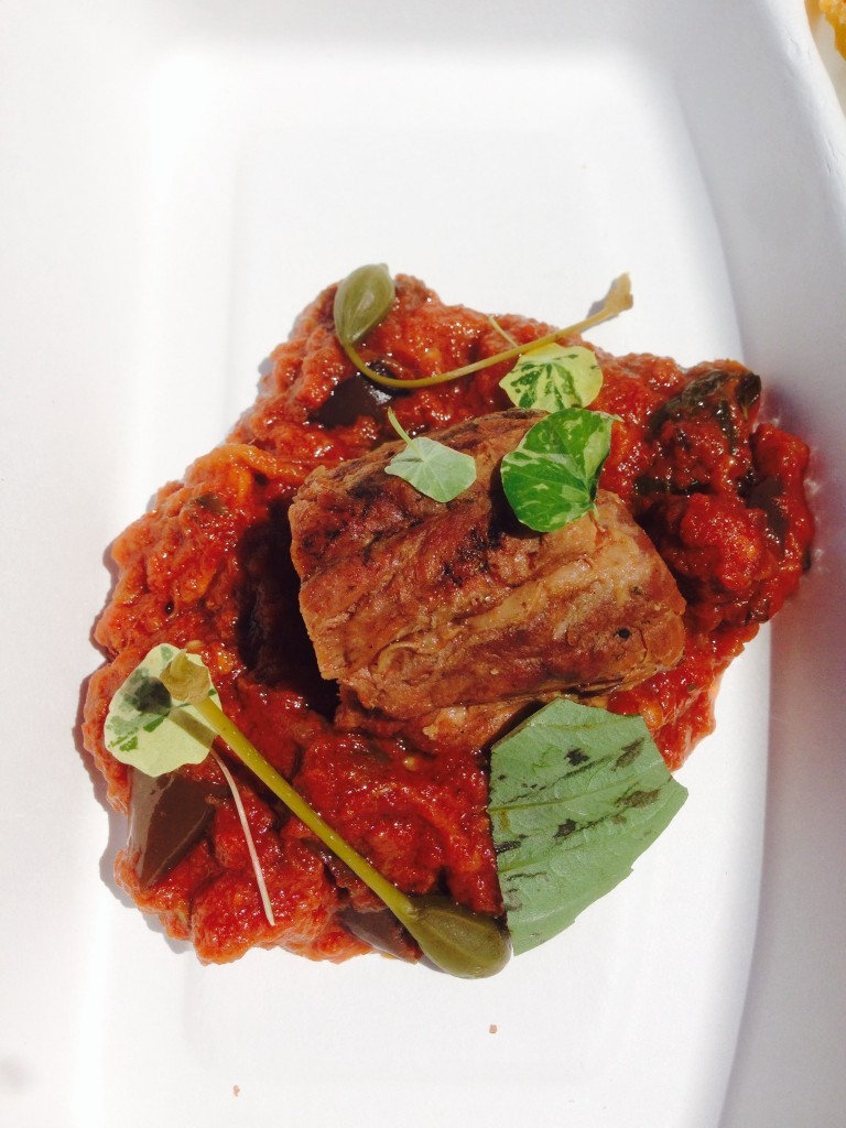 I was served a crisp, deep fried courgette flower stuffed with tomino cheese with just the right amount of texture and subtlety to not overpower the delicate taste of the flower. This was served with a beetroot and grapemust ketchup with a lovely sweetness that was suited to the deep fried flavor of the courgette flower.